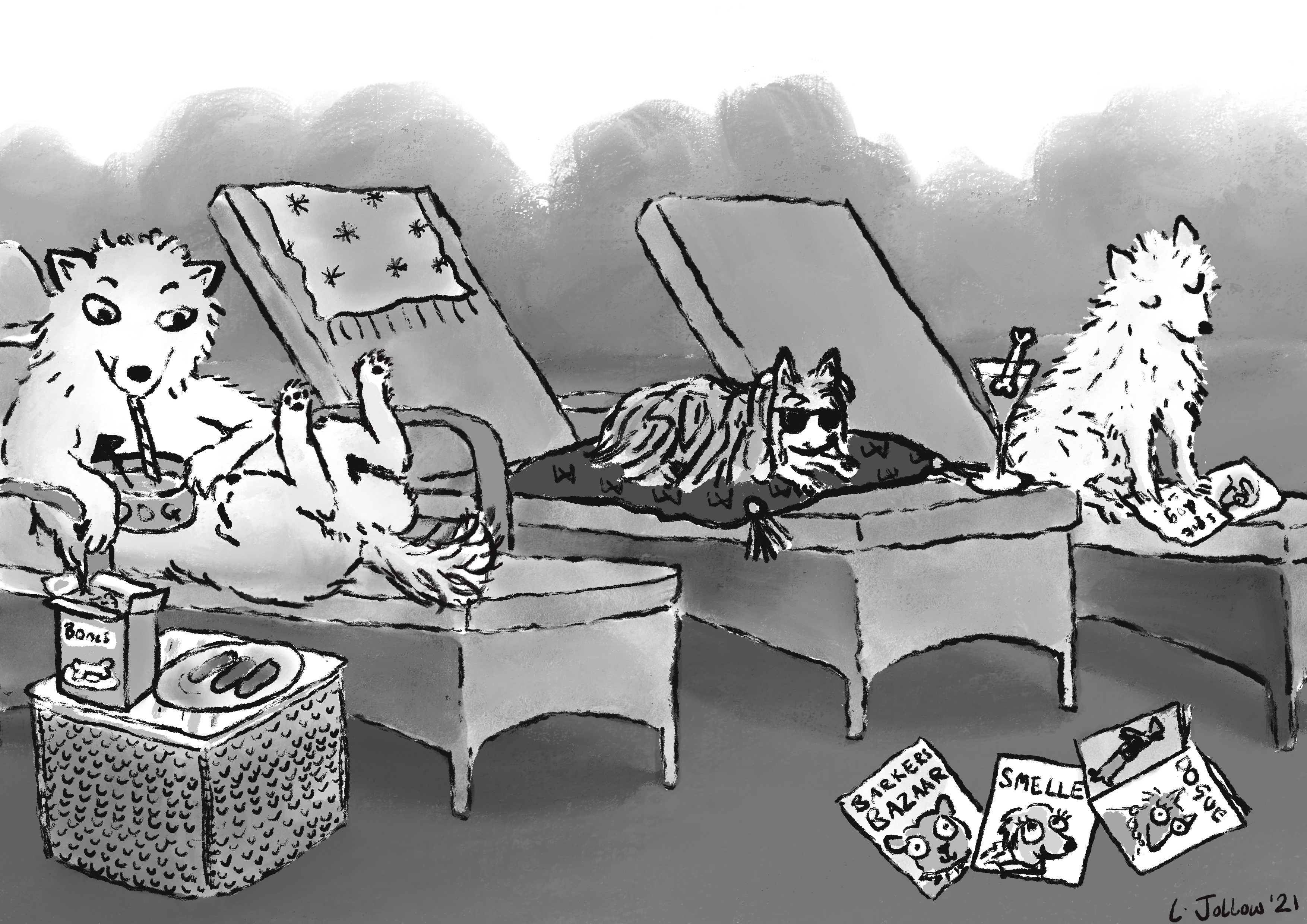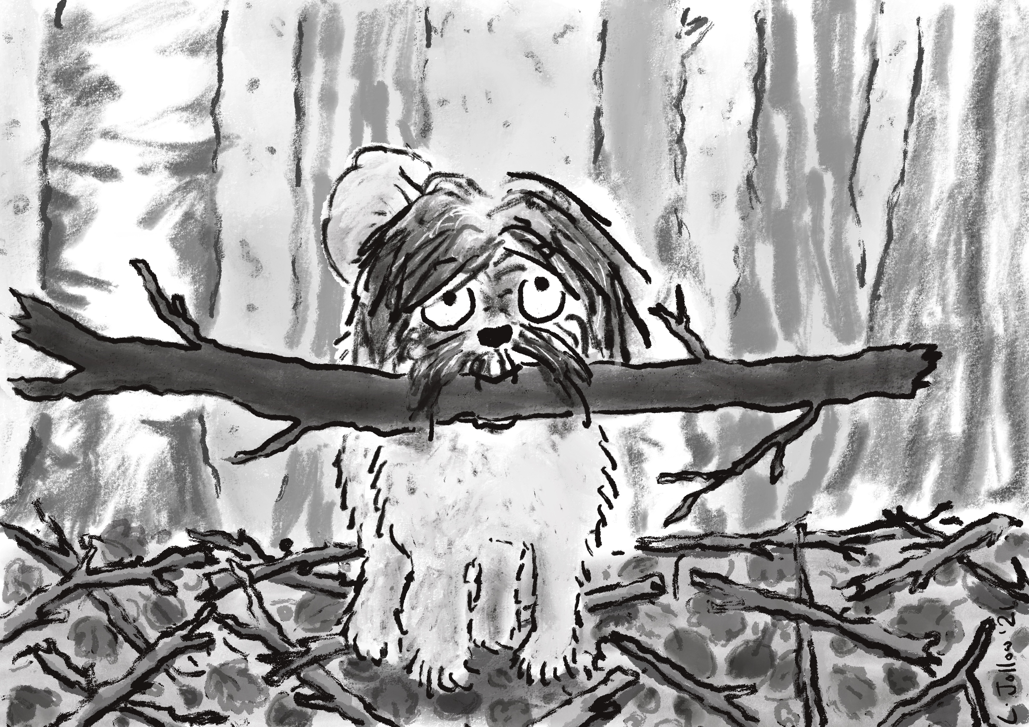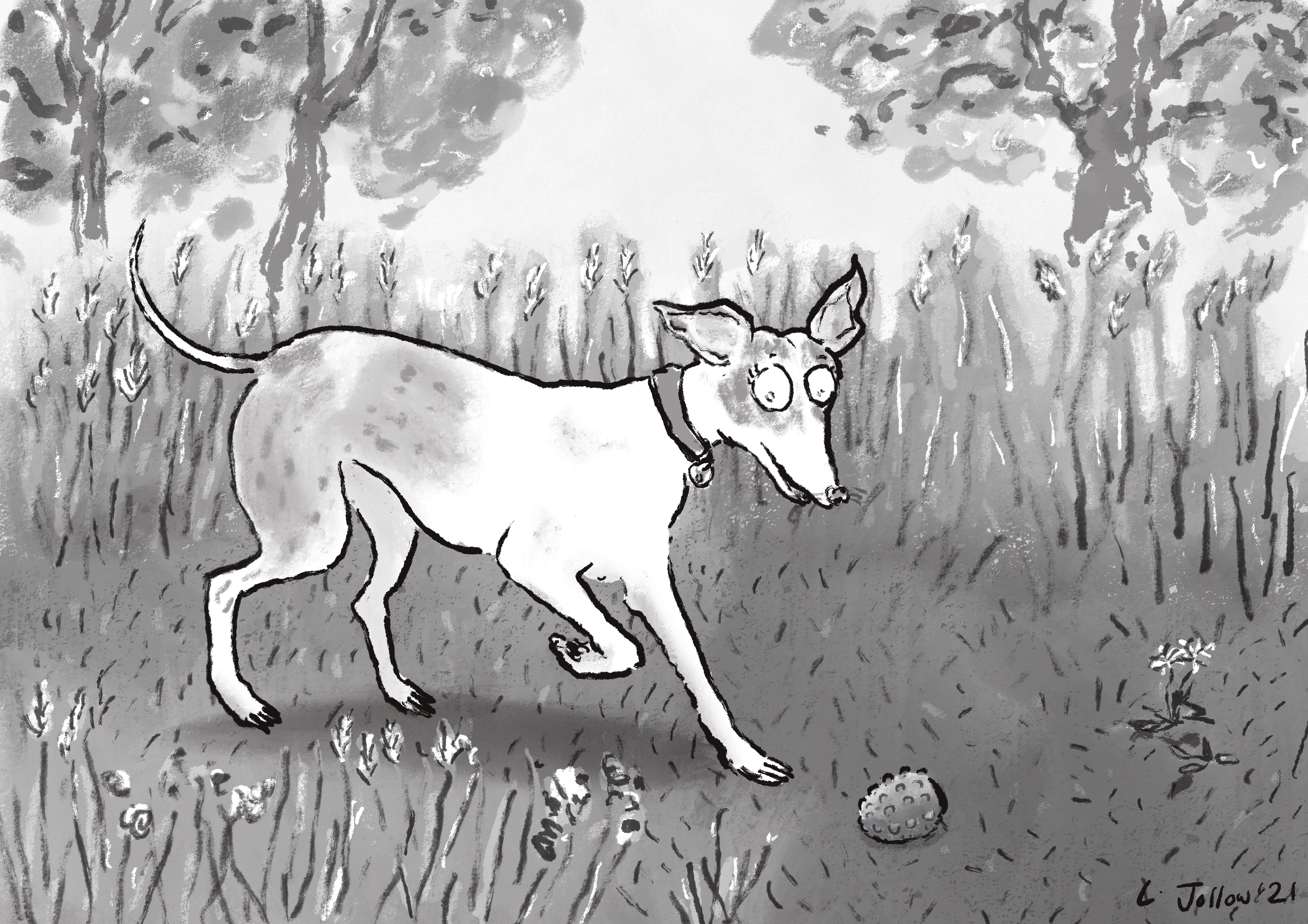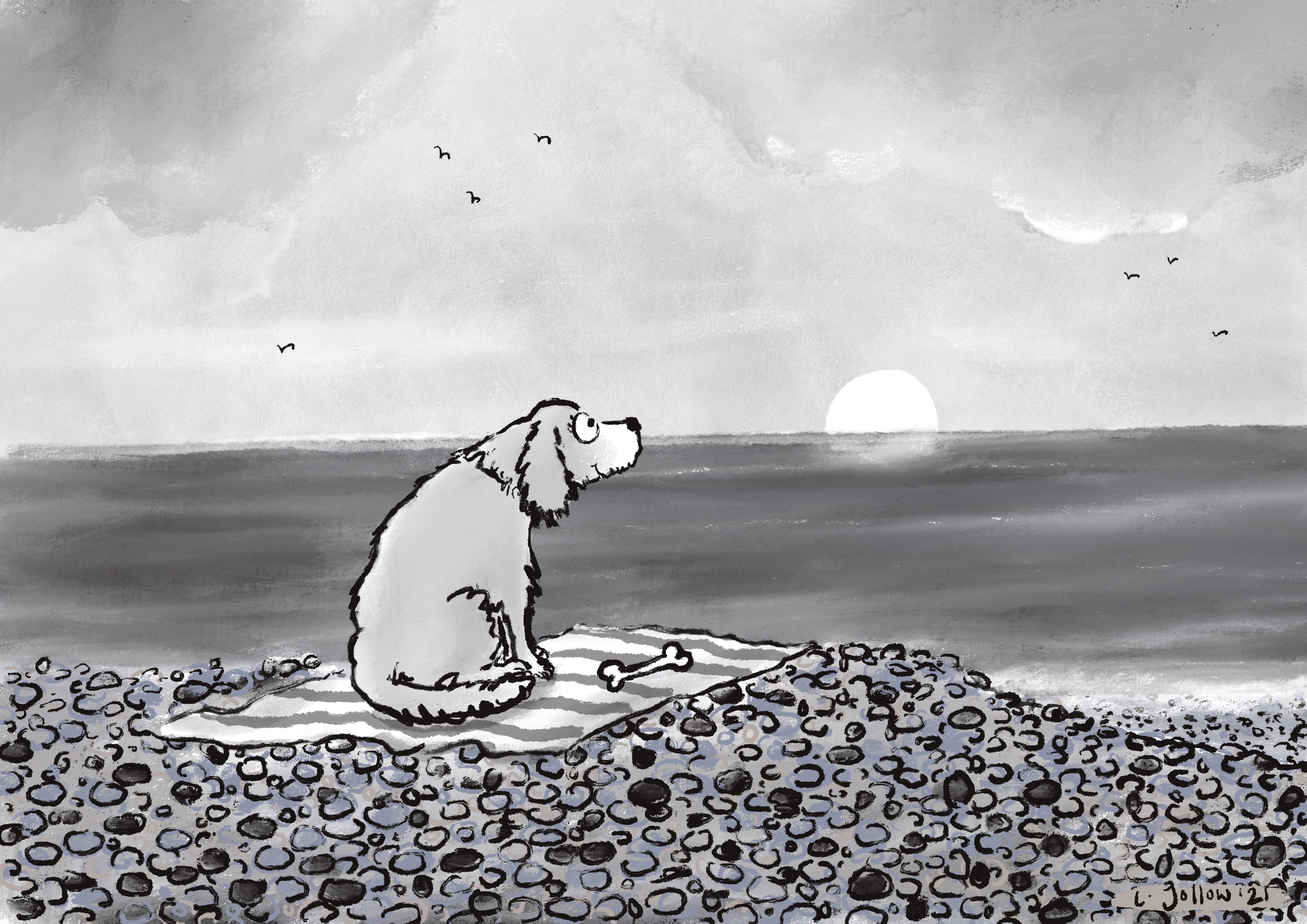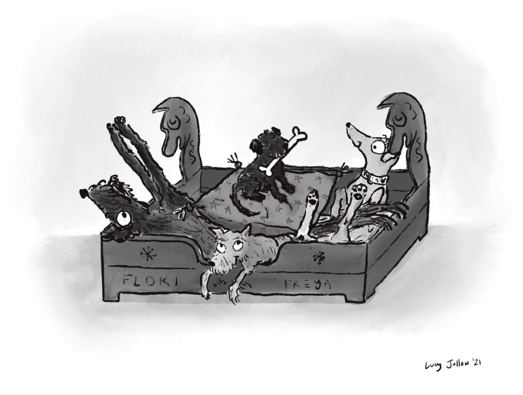 The next best thing to hibernation is sitting on our squishy sofa, drawing dogs. Frequently my own dog. Sometimes these end up on Instagram, and a smattering of people tap ‘like’. The brain usefully merged this information with the desire to raise money for animals, in memory of my lovely Nanna. And one evening it produced a helpful thought: maybe I could draw other people’s dogs in return for a few donations to Dogs Trust? So I put the idea out to my small band of followers, and… the owner of two gorgeous lurchers said yes! It turned out she actually owned four dogs, and they had just installed a custom-made Viking-inspired dog bed. I couldn’t have wished for a better commission! Thank you very much to @lurcher_floki for making the idea a reality!