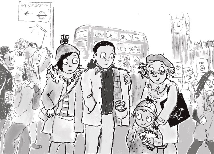 I rediscovered this feeling of freedom and means of communication when I took short courses in product design and illustration in my early 20s. I developed my sketching, digital and story skills through postgraduate study and then got my very first mini-commission with a personalised picture book (for a girl who loved ‘bumpy-nosed witches’). From that point onwards I’ve developed my practice through self-directed and freelance work, including Aussie picture book The Giant Spoon (2021), collaborations with Creation Theatre (2021 – 2023), World Book Day and Alice’s Day work for Daily Info Oxford (2021 – 2022), and a number of private commissions.